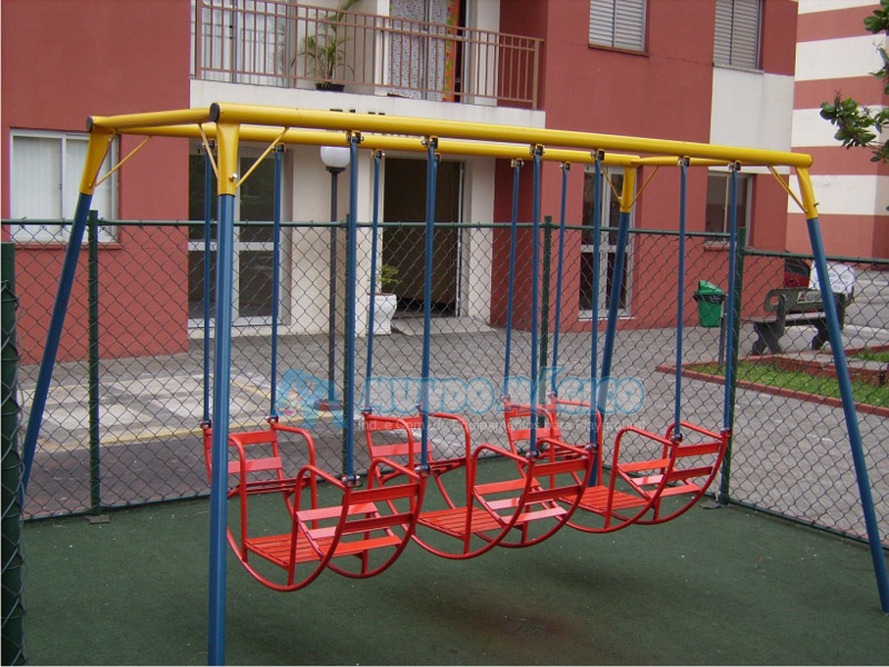 Brinquedo para ser utilizado por 4 ou 6 crianças confortavelmente seguras.
